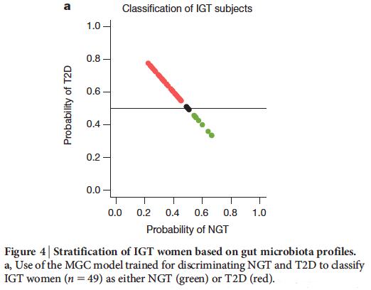 I’ll stress that the study itself is fascinating. The authors untangle correlated microbial constituents that differ between diabetic and non-diabetic people using clever analyses of microbial sequencing data. Notably, the authors find that their markers for diabetes, developed by analyzing 70-year-old Swedish women, fail quite completely to describe the occurrence of diabetes in a very different Chinese population, implying that prediction based on microbial censuses need to population-specific. (The paper was the topic of our “microbial ecology journal club” last week.) I, and other people at journal club, have issues with other graphs in the paper as well whose meaning or message is blurry, but these fall under the more common category of statistics-visualization challenges.