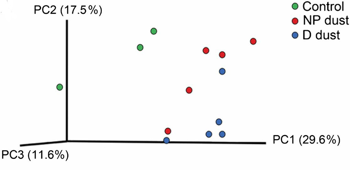 ** “Homes” is a bit strong: the dog-derived dust comes from one house. Apparently it’s hard to find homes that contain dogs. The non-dog-dust also comes from one house.