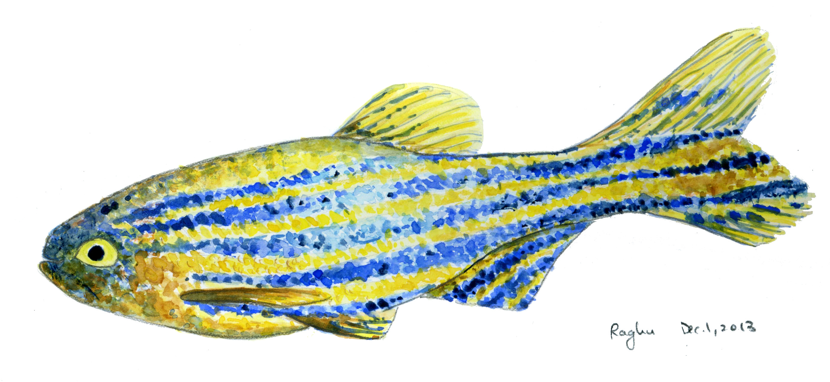 I painted a zebrafish a while ago, since my lab works with them a lot and I don’t have an illustration of one that I really like. It’s not great, which was confirmed by K. (age 8), who noted that the stripes are too straight, making the fish appear flat. I haven’t shown him the PCA graph.