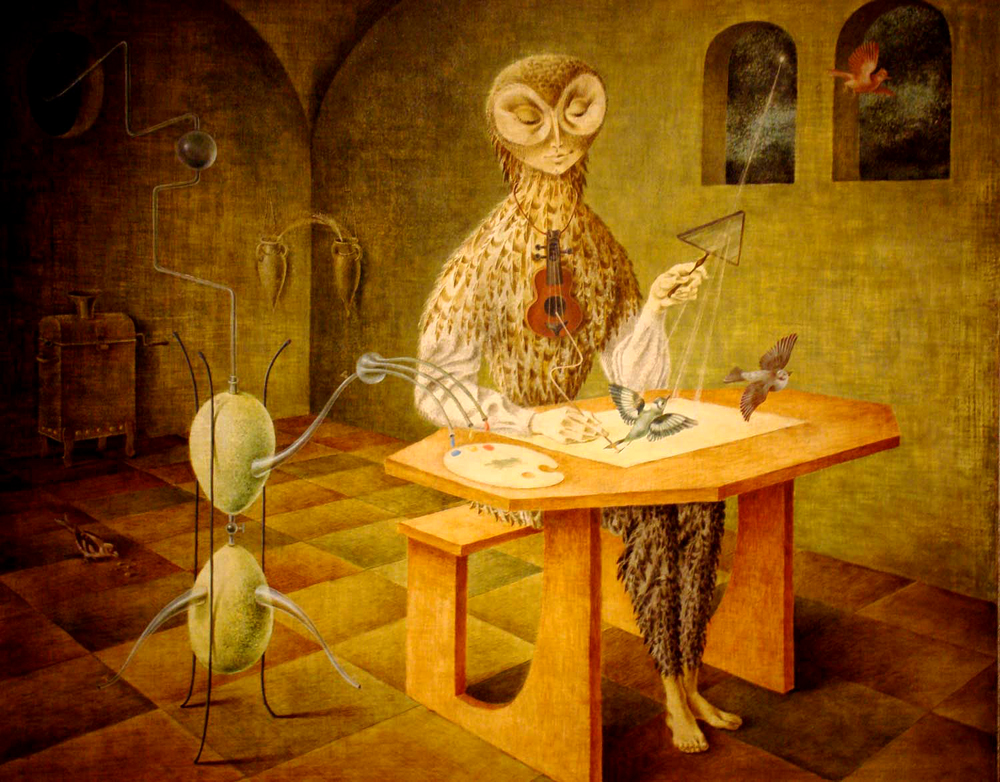 Of course, if I were designing a bird, I’d remove the DNA from red blood cells entirely, as is the case in mammals. But, no one asked me, and this provides yet another good illustration that evolution selects for traits that help organisms survive (like smaller genomes for birds), but doesn’t necessarily find “optimal” configurations. All this reminds me of the excellent painting by surrealist Remedios Varo, at the top of the post.