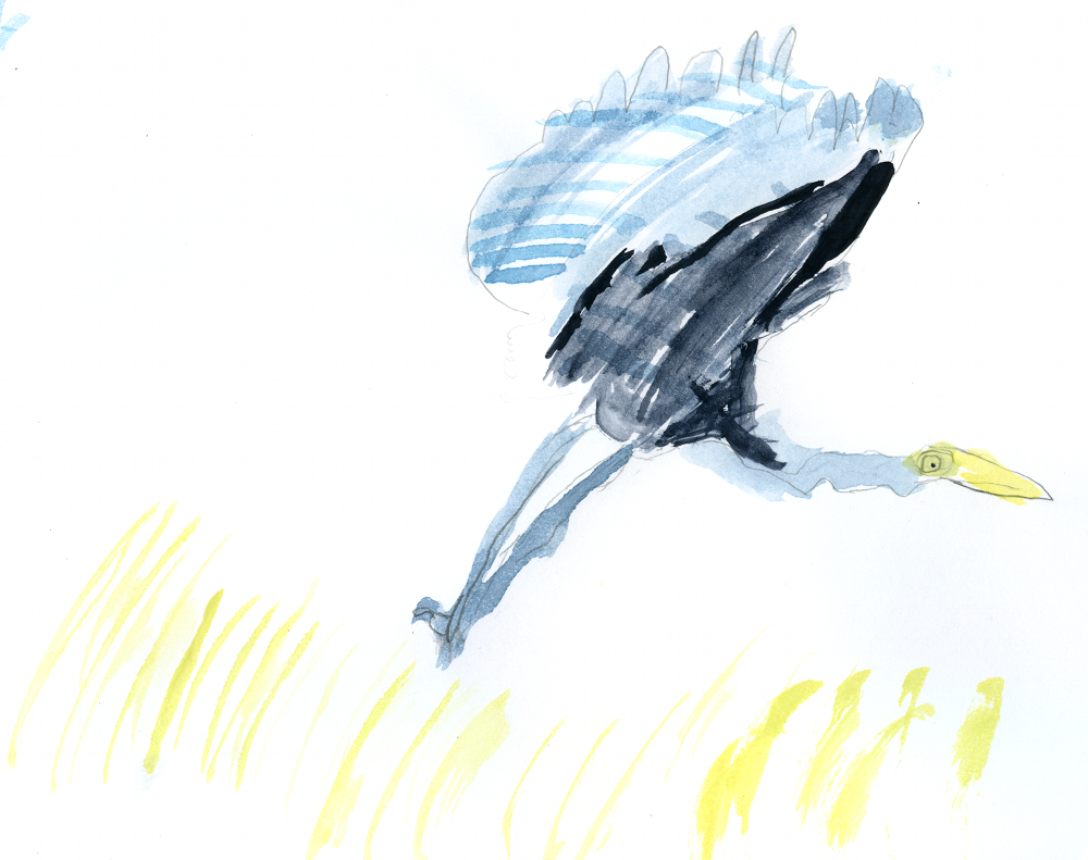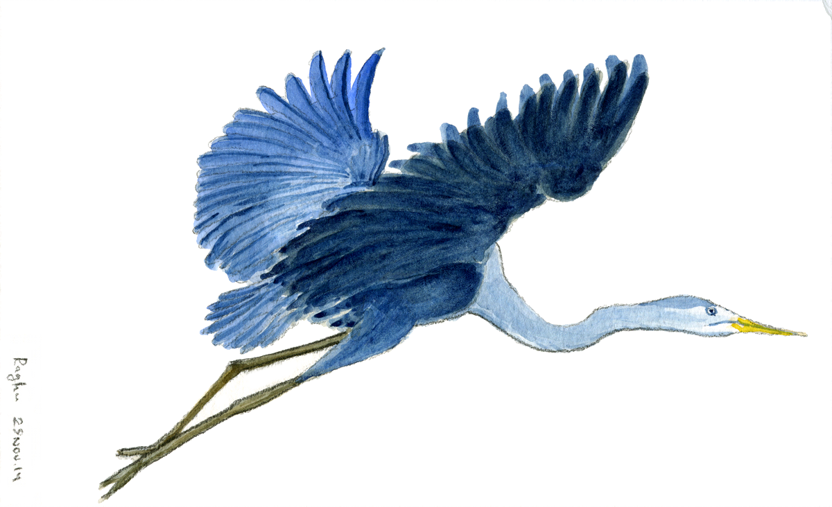 Today’s picture at the top of the page: a great blue heron I quickly painted a few days ago. S’s is below, at the end.