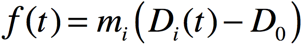 I searched through the space of m_i for the set that minimizes the total variance of m_i [D_i(t)-D_0] (i.e. the scatter of the various re-scaled curves). Plotting the rescaled time to degree gives:
