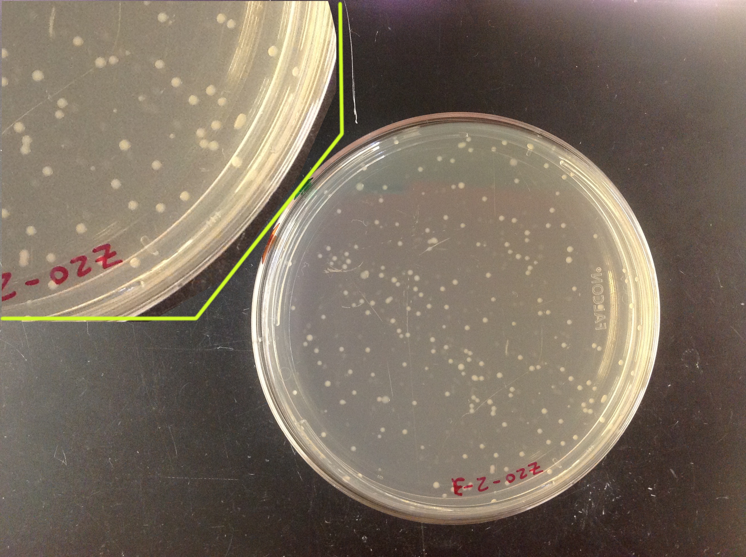 I thought I’d create a somewhat realistic but simple example of applying machine learning to images, to be less abstract than the last post’s schematic of pears and bananas. My lab works with bacteria a lot, and a very common task in microbiology is to grow bacteria on agar plates and count the colonies to quantify bacterial abundance. (In case you want to make plates with your kids, by the way, check out [1].) Here’s what a plate with colonies looks like:
