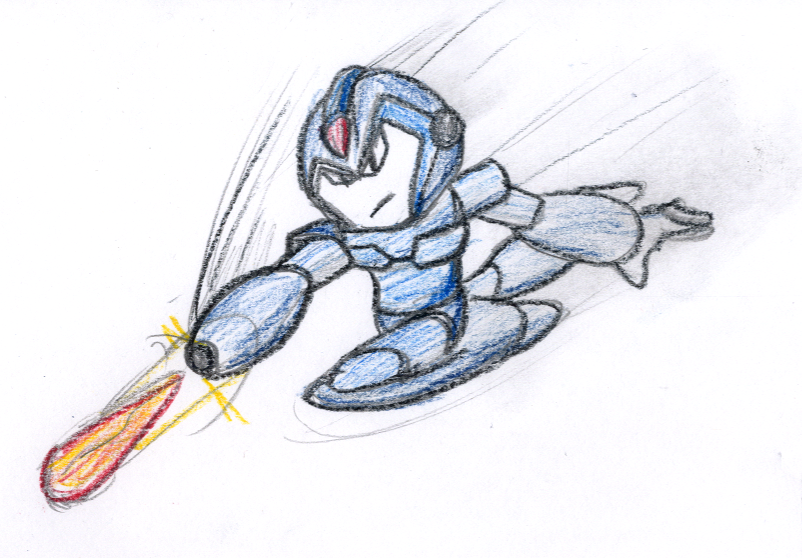 Continuing the illustration theme of Part I, I drew Mega Man (at the top of the post), which took far more time than I should admit to. K. did a quick sketch: