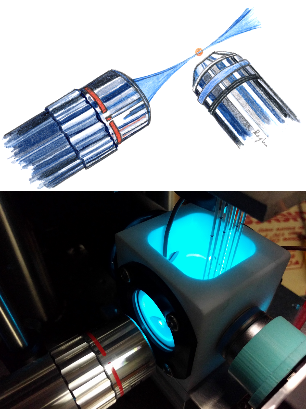 Two things were particularly fun when writing this paper. One was drawing some lenses — I wanted a simple, but not flat schematic of the basic design of (most) light sheet microscopes, with two perpendicular lenses and a thin sheet of light. My illustration is shown at the top of the post, just above a photo of one of our home-built microscopes. (This is Figure 1 C,D of the paper.)