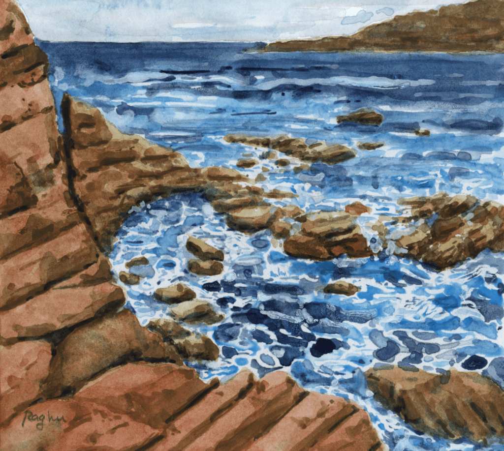 Another rocky shore. This one took much longer than I expected, without a great payoff. I should have made use of the flexibility of stopping times and left it unfinished. On the other hand, spending bits of time on it offered some respite during an extremely packed week. I based the painting on this video of a rocky shore. It’s amazing that so much technology is being harnessed to bring a 10 hour video of a shoreline to us, for free.