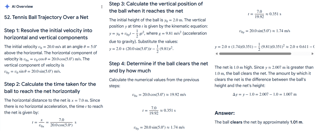 As I’ve written before, current, free-to-use large language models can easily answer homework and exam questions from courses like mine, or more advanced courses. My wife recently told me about Google’s “Homework Helper,” or as I’ve seen it referred to elsewhere, “insta-cheat,” which automatically appears in the address bar when a Canvas site is loaded. (Canvas is a very popular “learning management” system used at the University of Oregon and countless other universities and K-12 schools. I don’t know if the “Homework Helper” works for other systems.) Clicking it, one draws a box around anything on the page, a homework question for example. Google Lens parses the snapshot, and Google’s AI returns the answer. How well does it work? Let’s see…